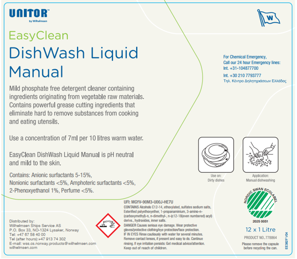 | Unitor™ Easyclean™ Dishwash Liquid Manual | 778864 | Unitor™ Enviroclean™ | 765018 |