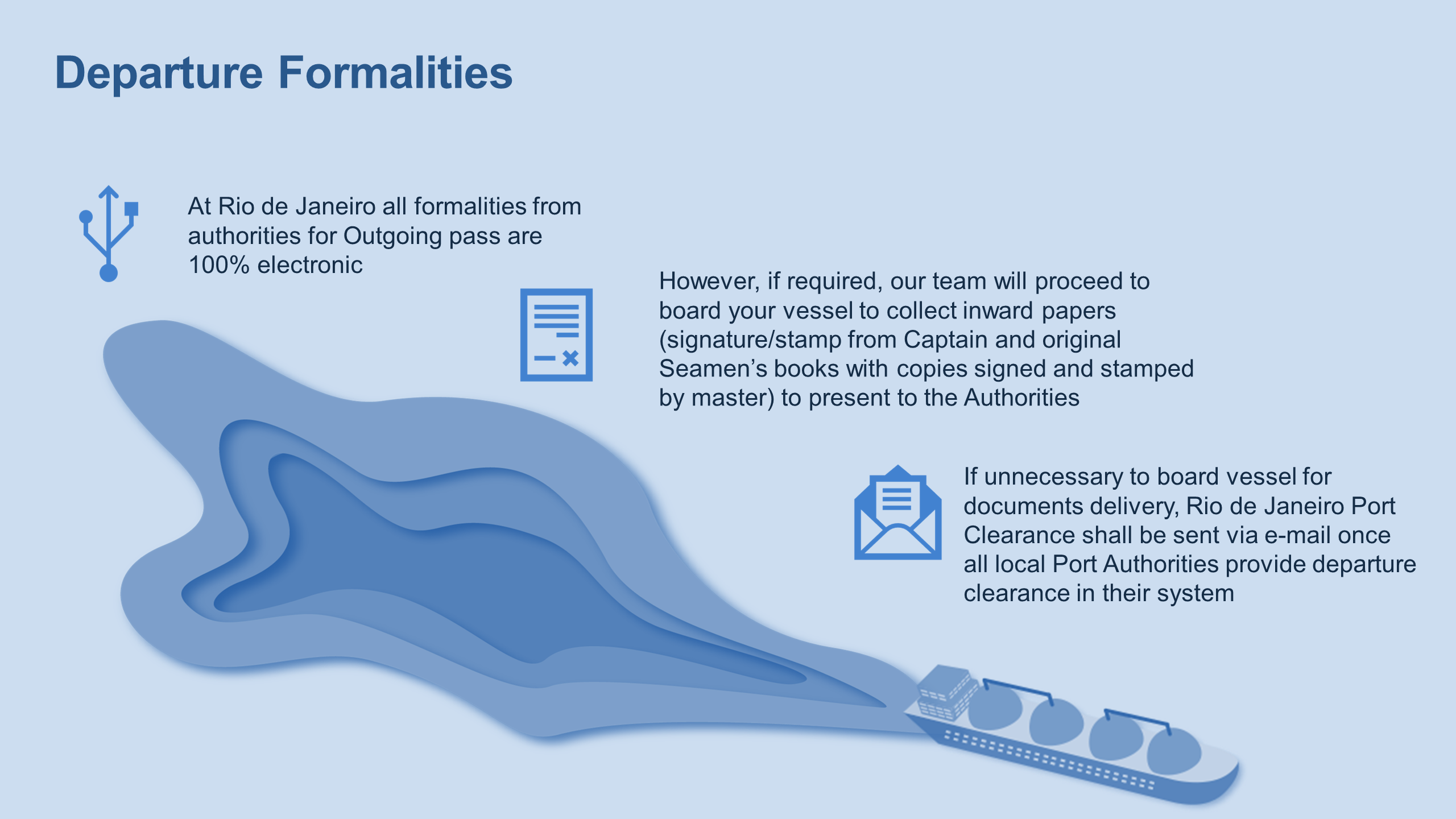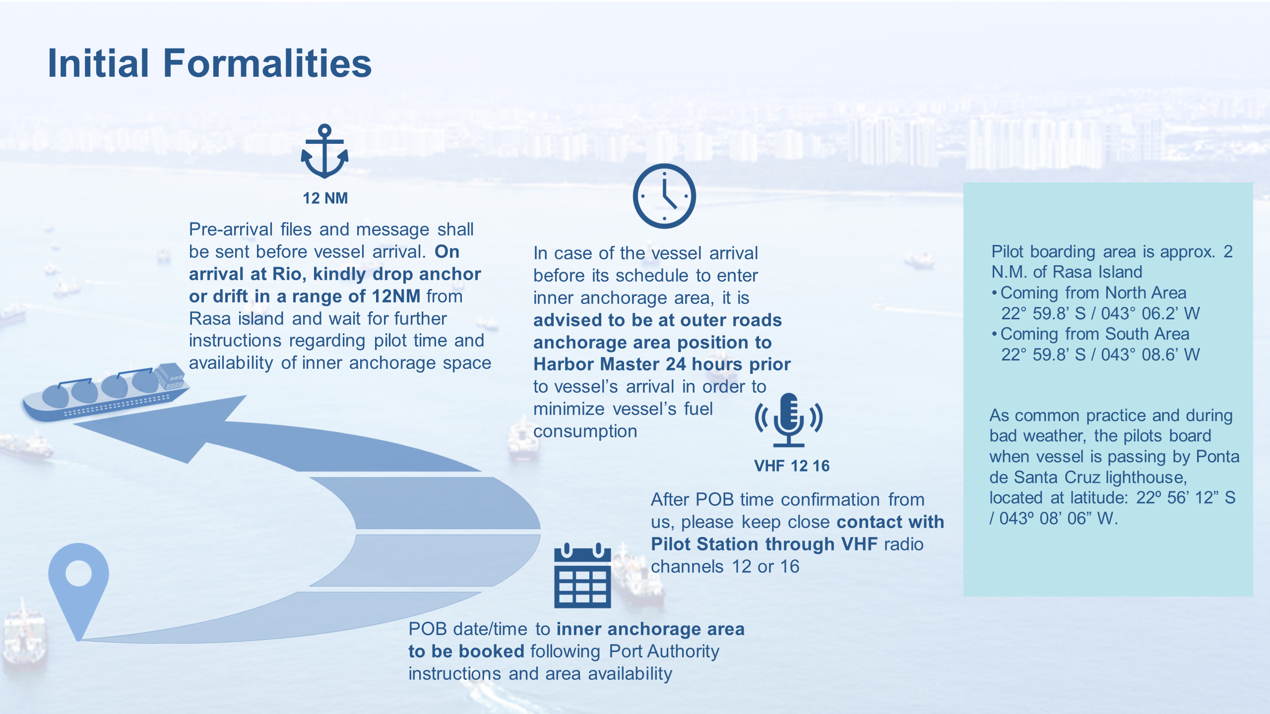 With our Ships Agents as experts on the ground, we ensure your safety and compliance to local practices and restrictions in Rio De Janeiro for your bunkering port calls.