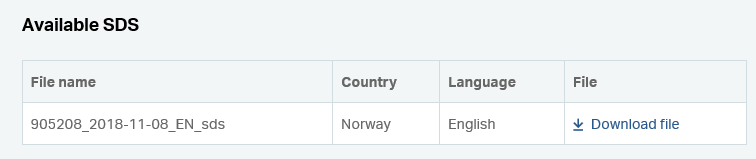 By clicking on “Find available SDS”, a list of available records is shown with the option to download. The file format is .pdf.